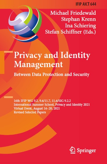 Privacy and Identity Management. Between Data Protection and Security: 16th IFIP WG 9.2, 9.6/11.7, 11.6/SIG 9.2.2 International Summer School, Privacy and Identity 2021 Virtual Event, August 16–20, 2021 Revised Selected Papers